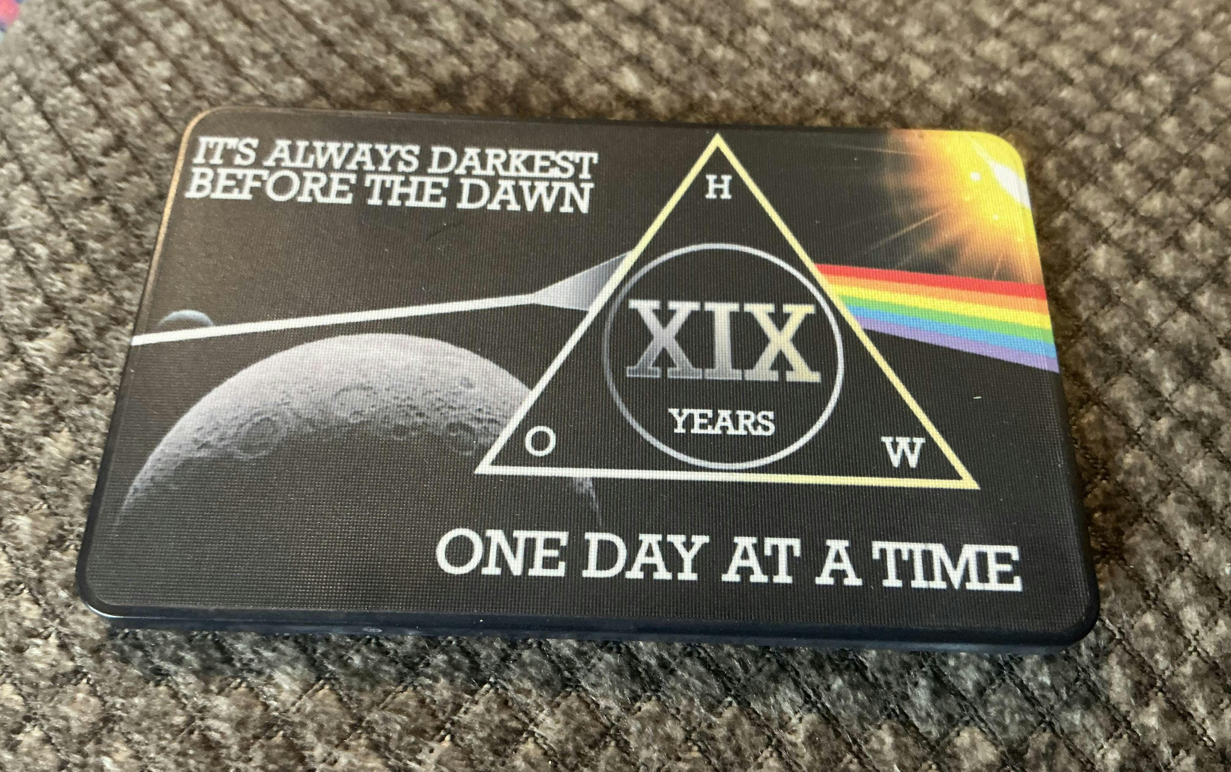 - In addition to One Day At A Time, we’ve also included a line from the Bill W story in the AA Big Book. It’s always darkest before the dawn. This recovery gift signifies going from darkness to a new day.